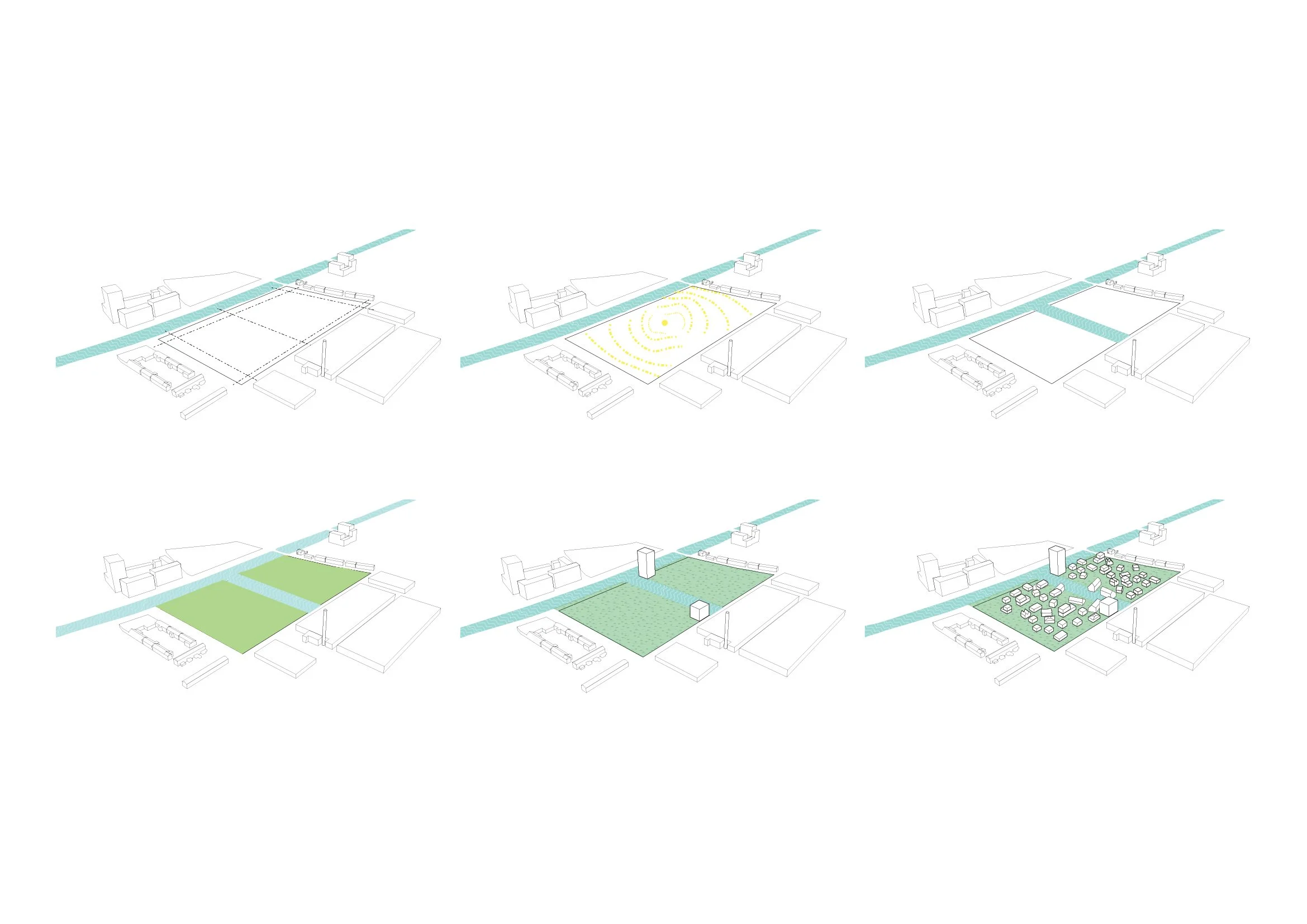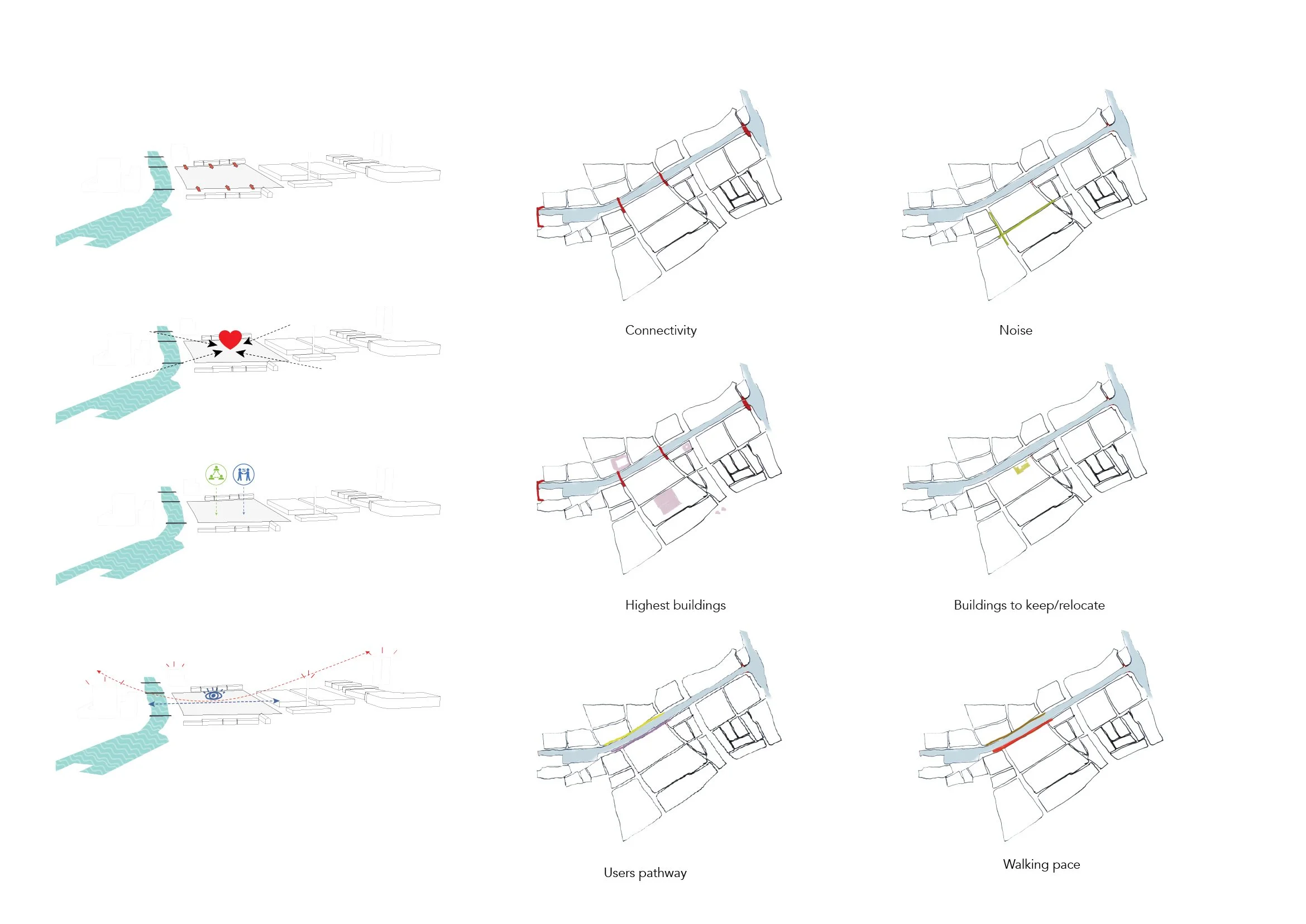 Creating a playful community where elderly, families are living. to break the bubble, and create interaction between each individual. Sort of forum for old people where they can gather, work, care and share among different generations, a forum, as a heart of the neighborhood, from where people meet, learn, break and enhance the relationship between the two sides of the canal on a visual and on a functional level, create more access, and greenery.